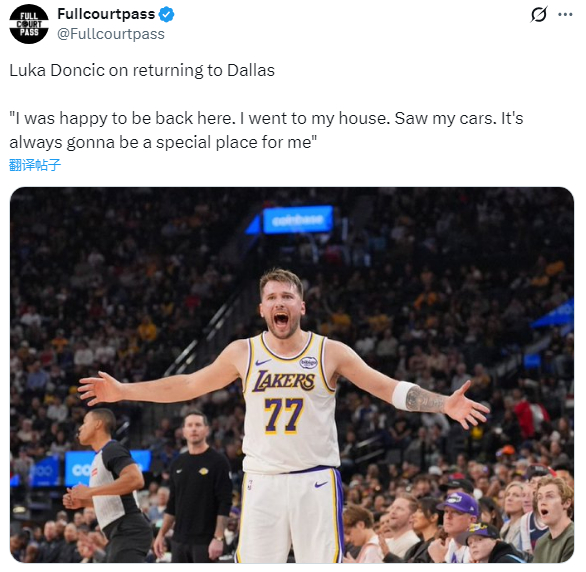 东契奇还表示:这里是个特别的地方。我永远都想赢球,不管怎样。我的意思是,每场比赛我都想赢,但显然这场会有点不一样,不过我还是想赢下每一场。