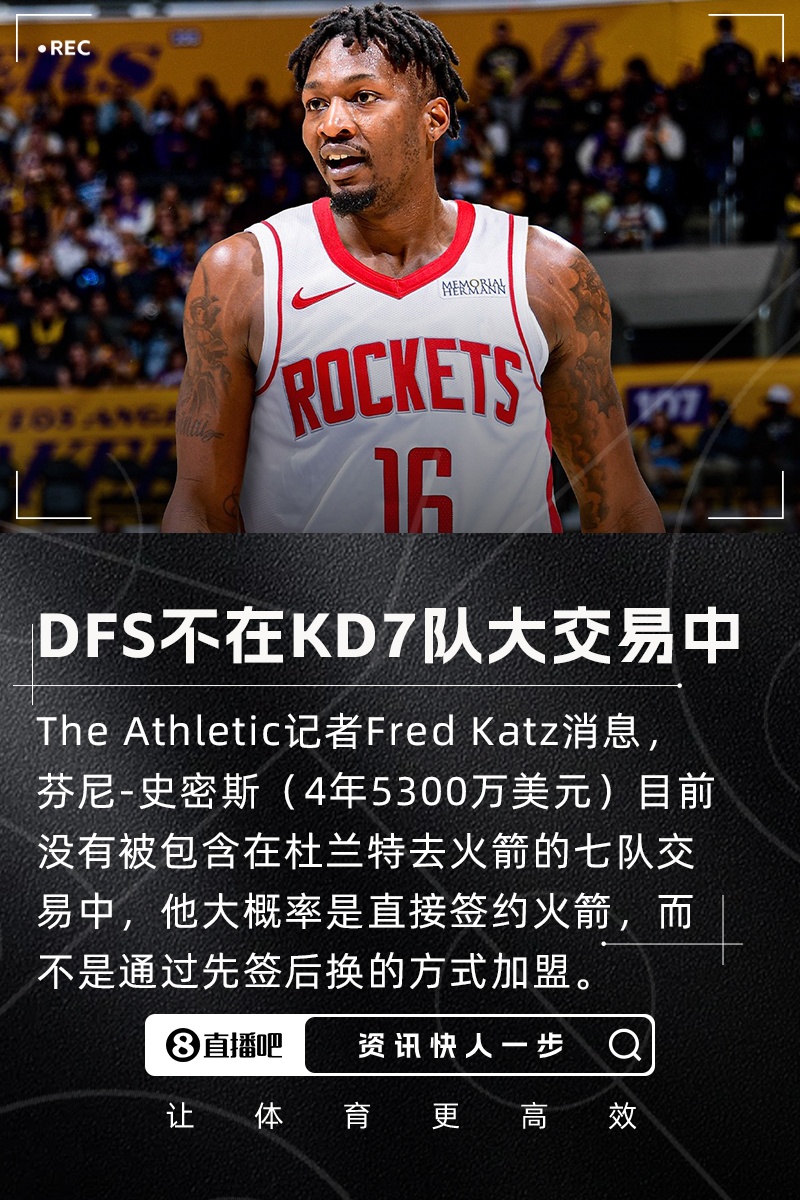 The Athletic记者Fred Katz表示,多里安-芬尼-史密斯(4年5300万美元)目前没有被包含在这笔交易中,他大概率是直接签约火箭,而不是通过先签后换的方式加盟。